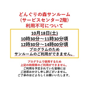 【10月18日(土)10時30分~11時30分頃、12時30分~14時頃】どんぐりの森サービスセンター2階のサンルームのご利用ができません。