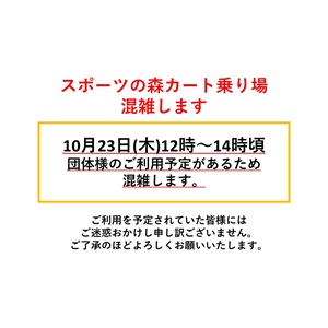10/23(木)スポーツの森 乗り物広場 カート場が混雑します