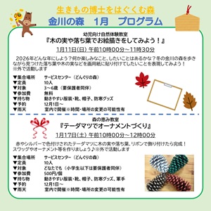 2026年どんな年にしよう?何か楽しみなこと、したいことはあるかな?冬の金川の森をお歩きながら見つけた落ち葉や木の実などを画用紙に貼り付けてしたいことを表現してみよう!※外で活動します