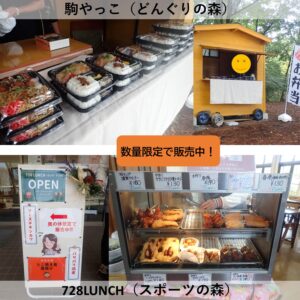 飲食は他にも、どんぐりの森にてお菓子、スポーツの森には菓子パンやカップラーメンの自販機(お湯・割りばしの用意有)が常設されているのでご利用ください🌞