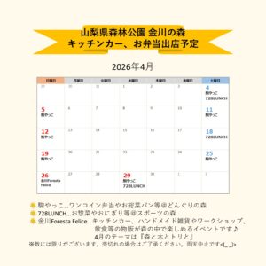 金川の森には飲食を提供するお店が無く、キッチンカーやお弁当屋さんが週末を中心に出店してくれています!