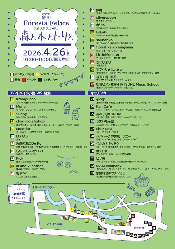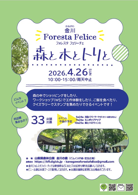 【4月26日(日)『金川Foresta Felice ~森と木とトリと~』開催のお知らせ】